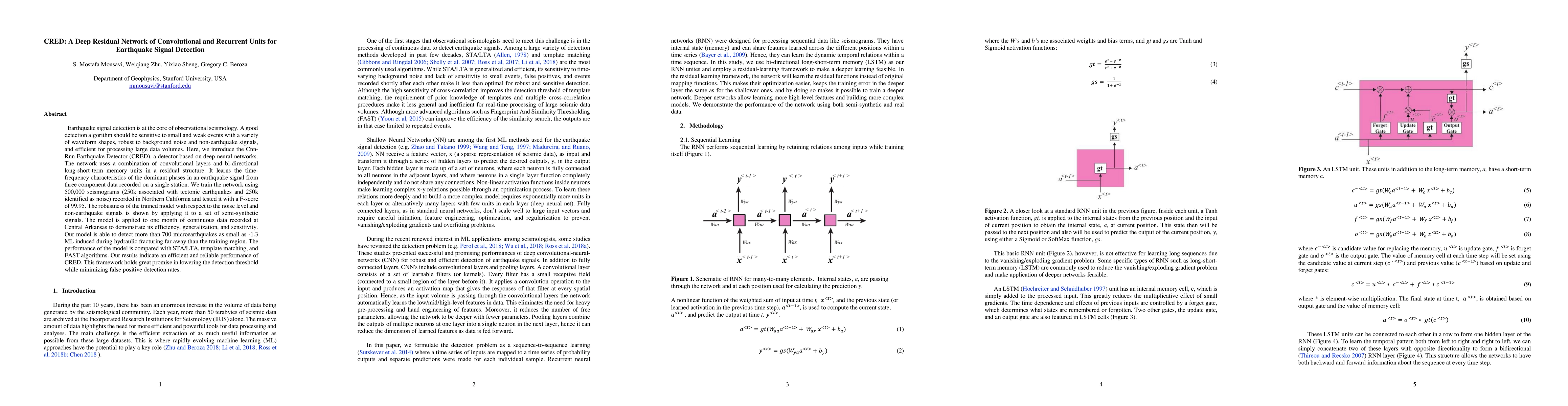The Cnn-Rnn Earthquake Detector (CRED) combines convolutional and recurrent neural networks to detect earthquake signals with high sensitivity and robustness. Trained on 500,000 seismograms from Northern California, it achieves an F-score of 99.95 and demonstrates efficiency and generalization by detecting microearthquakes in Central Arkansas, outperforming traditional detection methods.