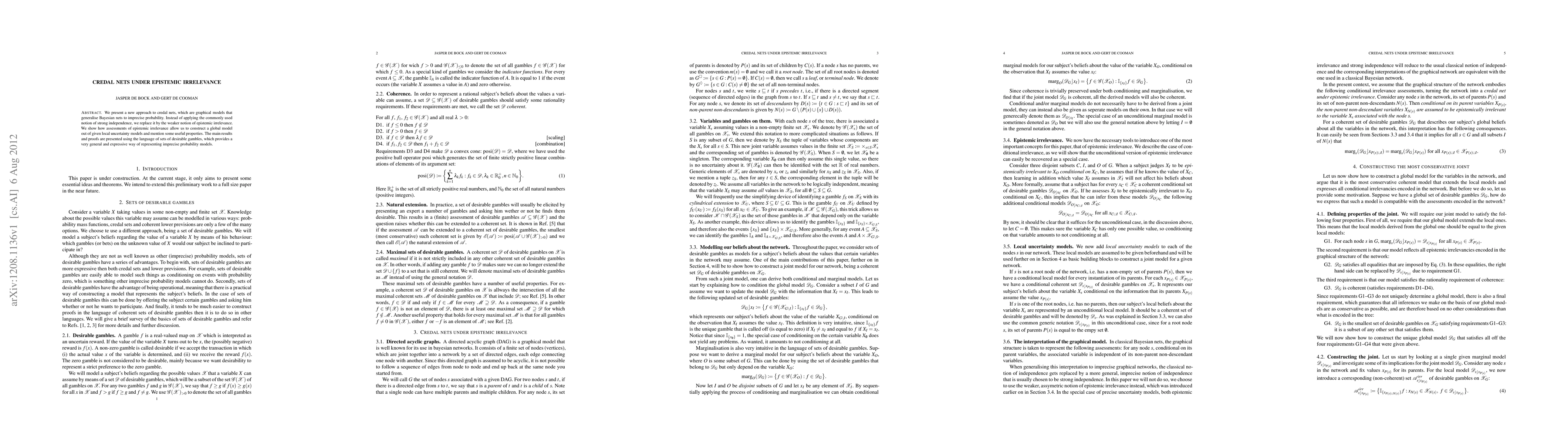 This paper introduces a novel method for constructing credal nets using epistemic irrelevance instead of strong independence, enabling the creation of global models from local uncertainty assessments. The approach leverages sets of desirable gambles for a general and expressive representation of imprecise probability models.