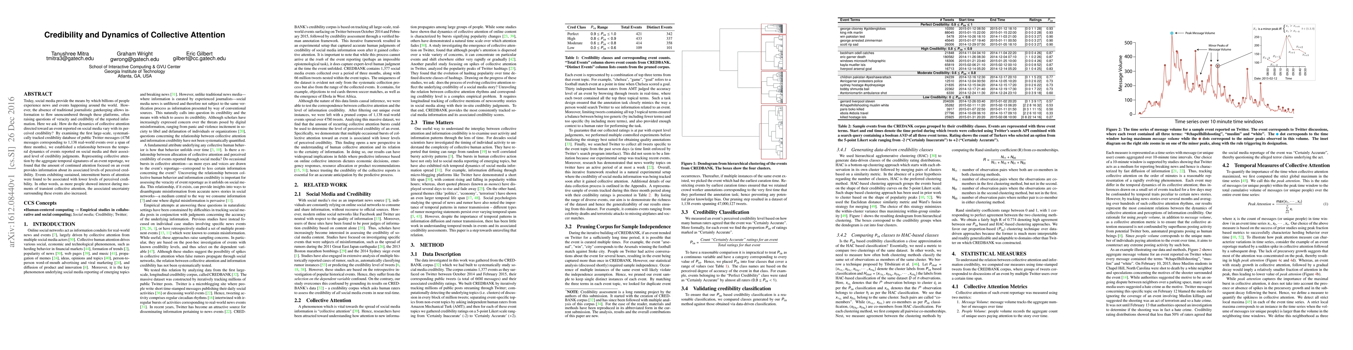 This study investigates how the dynamics of collective attention on social media correlate with perceived credibility of reported events. Using a large dataset of 47 million Twitter messages, it found that sustained attention indicates higher credibility, while intermittent bursts suggest lower credibility and uncertainty.