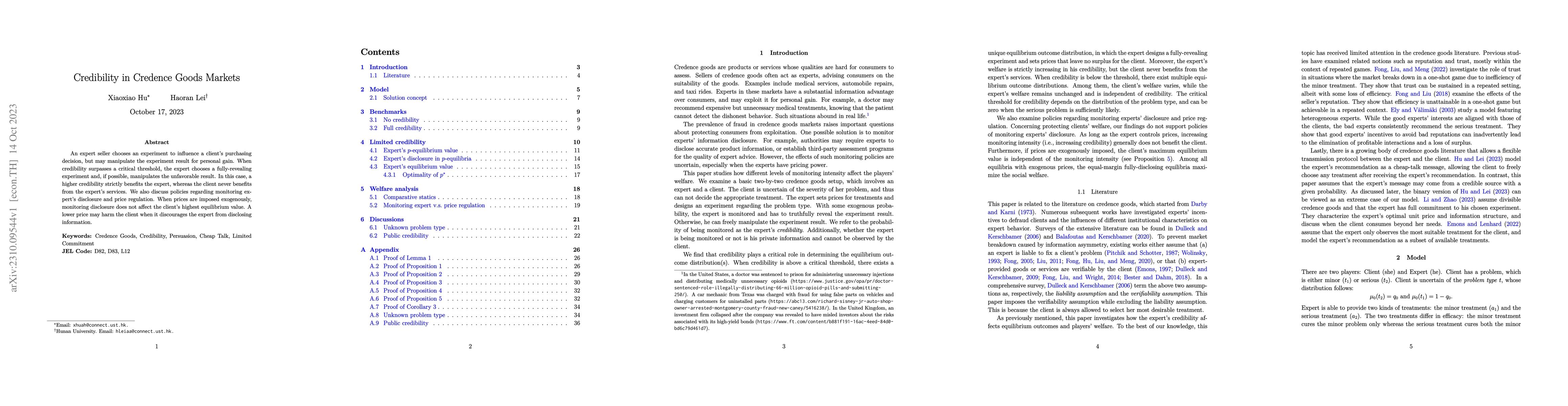 This paper examines how credibility affects expert sellers in credence goods markets. It finds that when credibility exceeds a threshold, experts may opt for fully-revealing but manipulative experiments, benefiting themselves at the client's expense. The study also explores the impact of monitoring and price regulation on these dynamics.