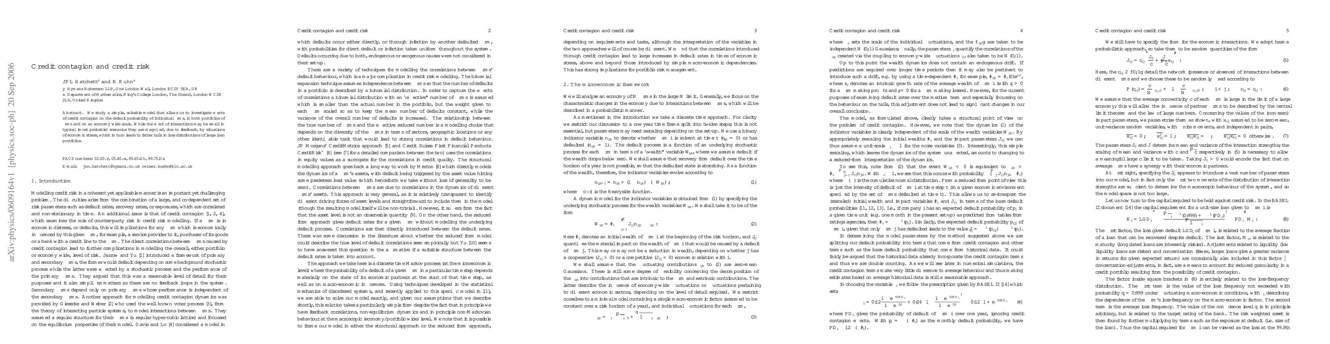 We study a simple, solvable model that allows us to investigate effects of credit contagion on the default probability of individual firms, in both portfolios of firms and on an economy wide scale. While the effect of interactions may be small in typical (most probable) scenarios they are magnified, due to feedback, by situations of economic stress, which in turn leads to fatter tails in loss distributions of large loan portfolios.