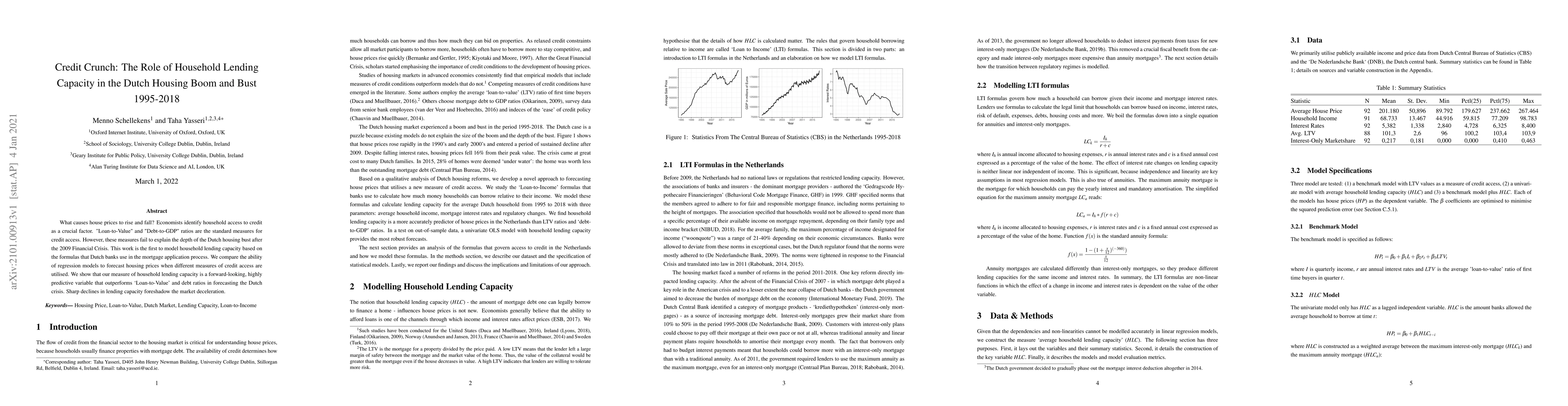What causes house prices to rise and fall? Economists identify household access to credit as a crucial factor. "Loan-to-Value" and "Debt-to-GDP" ratios are the standard measures for credit access. However, these measures fail to explain the depth of the Dutch housing bust after the 2009 Financial Crisis. This work is the first to model household lending capacity based on the formulas that Dutch banks use in the mortgage application process. We compare the ability of regression models to forecast housing prices when different measures of credit access are utilised. We show that our measure of household lending capacity is a forward-looking, highly predictive variable that outperforms `Loan-to-Value' and debt ratios in forecasting the Dutch crisis. Sharp declines in lending capacity foreshadow the market deceleration.