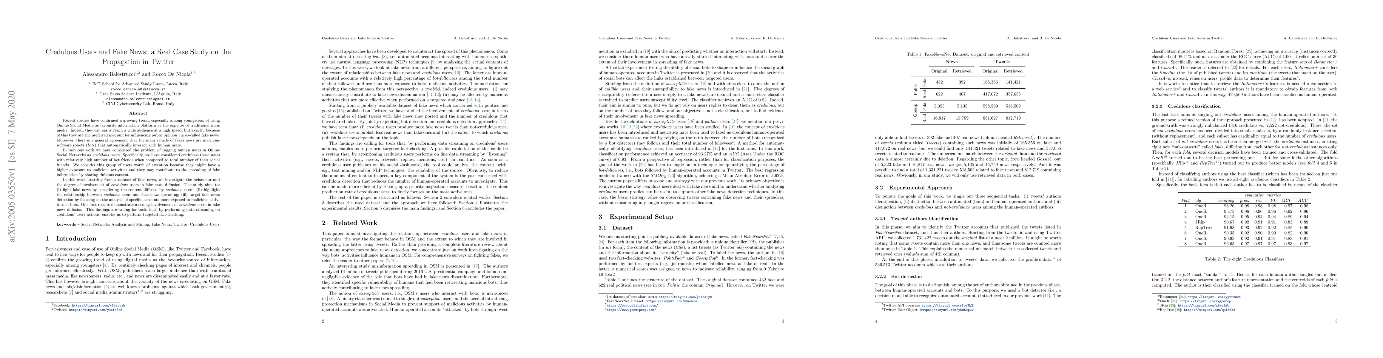 This study investigates the role of credulous users—those with a high number of bot friends—in the spread of fake news on Twitter. The research highlights a strong involvement of these users in disseminating fake news, suggesting the need for targeted fact-checking tools based on real-time data analysis of their activities.