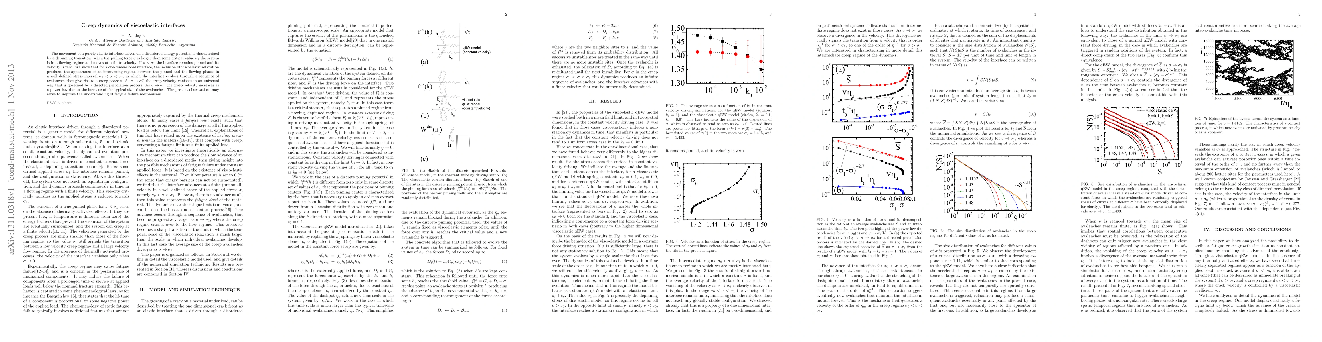 Researchers studied how viscoelastic interfaces move when pulled at different forces, finding an intermediate regime where they exhibit a creep process with increasing velocity as the force approaches critical values.