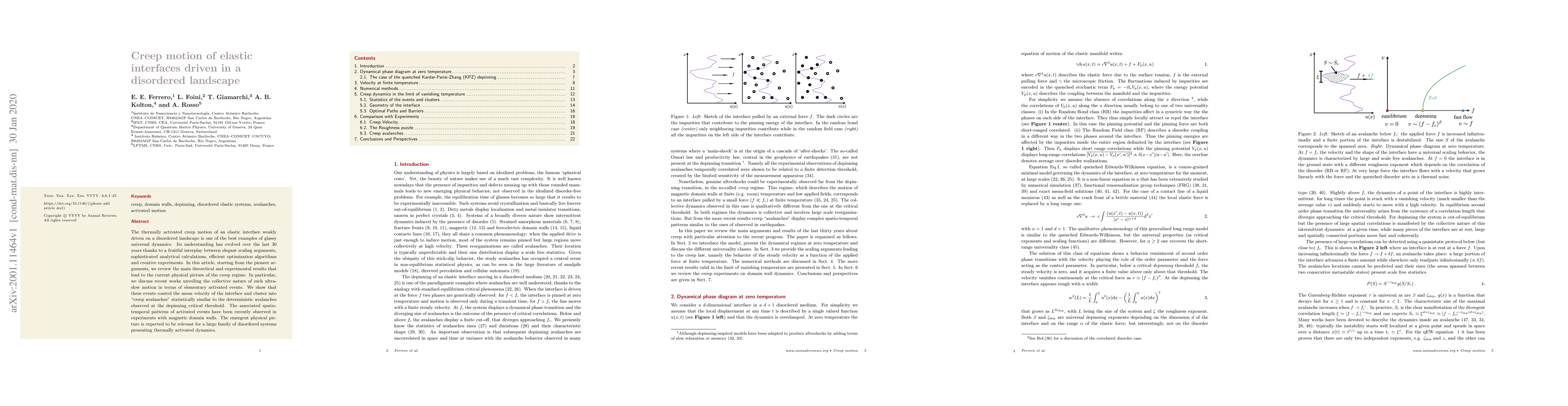 This paper reviews the theoretical and experimental advances in understanding the thermally activated creep motion of elastic interfaces in disordered landscapes, highlighting recent findings on the collective nature and statistical similarities of activated events that drive this ultra-slow motion, akin to creep avalanches. Experimental observations with magnetic domain walls support these insights, suggesting broad relevance for various disordered systems.
