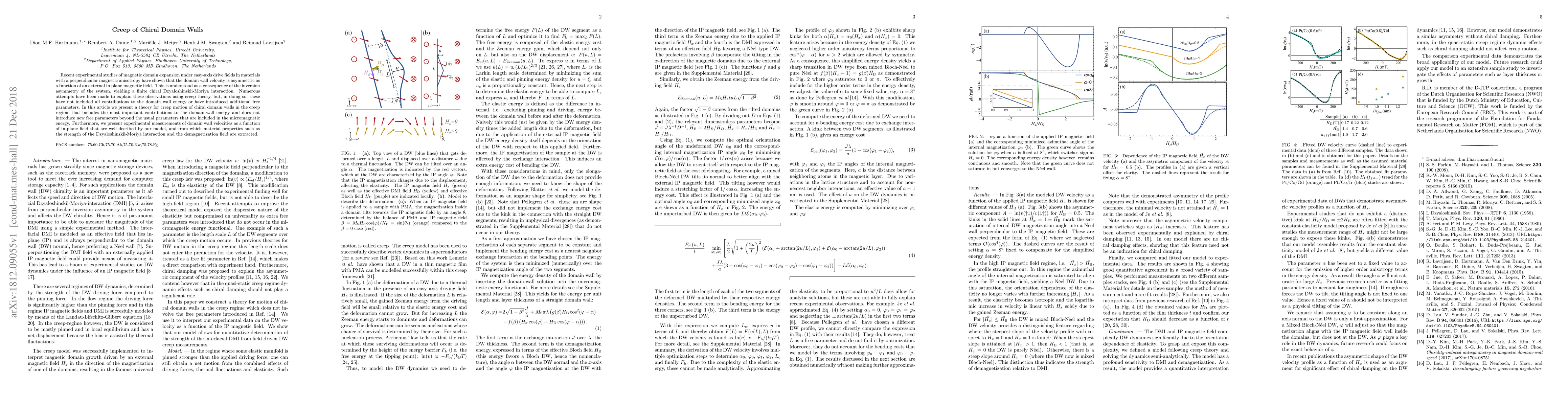 Recent experimental studies of magnetic domain expansion under easy-axis drive fields in materials with a perpendicular magnetic anisotropy have shown that the domain wall velocity is asymmetric as a function of an external in plane magnetic field. This is understood as a consequence of the inversion asymmetry of the system, yielding a finite chiral Dzyaloshinskii-Moriya interaction. Numerous attempts have been made to explain these observations using creep theory, but, in doing so, these have not included all contributions to the domain wall energy or have introduced additional free parameters. In this article we present a theory for creep motion of chiral domain walls in the creep regime that includes the most important contributions to the domain-wall energy and does not introduce new free parameters beyond the usual parameters that are included in the micromagnetic energy. Furthermore, we present experimental measurements of domain wall velocities as a function of in-plane field that are well decribed by our model, and from which material properties such as the strength of the Dzyaloshinskii-Moriya interaction and the demagnetization field are extracted.
