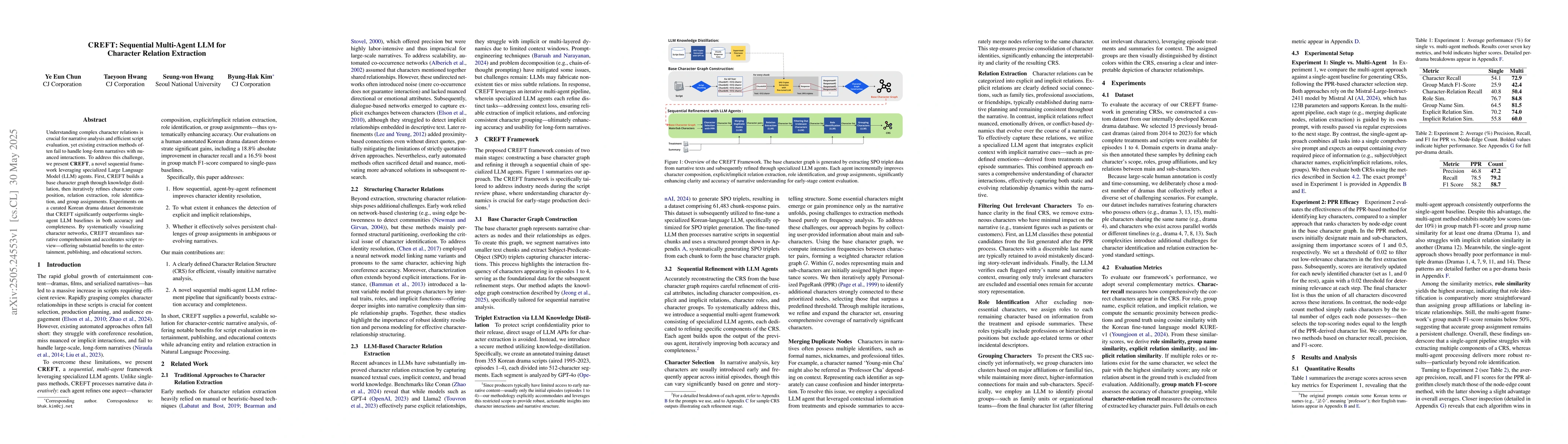 CREFT introduces a novel sequential multi-agent LLM approach for character relation extraction, improving accuracy and completeness in narrative analysis.