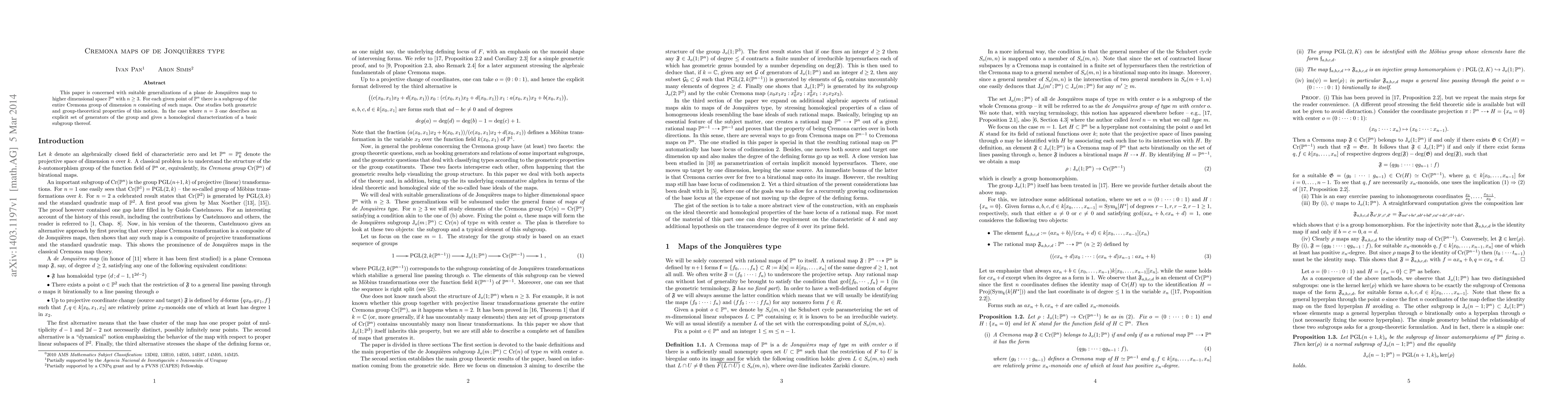 This paper is concerned with suitable generalizations of a plane de Jonqui\`eres map to higher dimensional space $\mathbb{P}^n$ with $n\geq 3$. For each given point of $\mathbb{P}^n$ there is a subgroup of the entire Cremona group of dimension $n$ consisting of such maps. One studies both geometric and group-theoretical properties of this notion. In the case where $n=3$ one describes an explicit set of generators of the group and gives a homological characterization of a basic subgroup thereof.