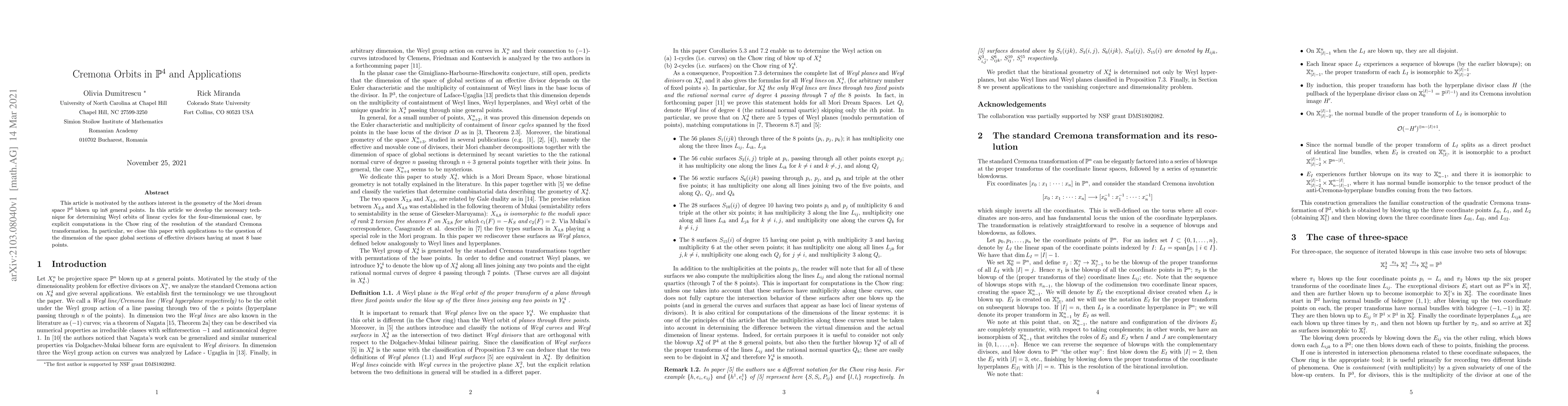 This article is motivated by the authors interest in the geometry of the Mori dream space $\mathbb{P}^4$ blown up in $8$ general points. In this article we develop the necessary technique for determining Weyl orbits of linear cycles for the four-dimensional case, by explicit computations in the Chow ring of the resolution of the standard Cremona transformation. In particular, we close this paper with applications to the question of the dimension of the space global sections of effective divisors having at most $8$ base points.