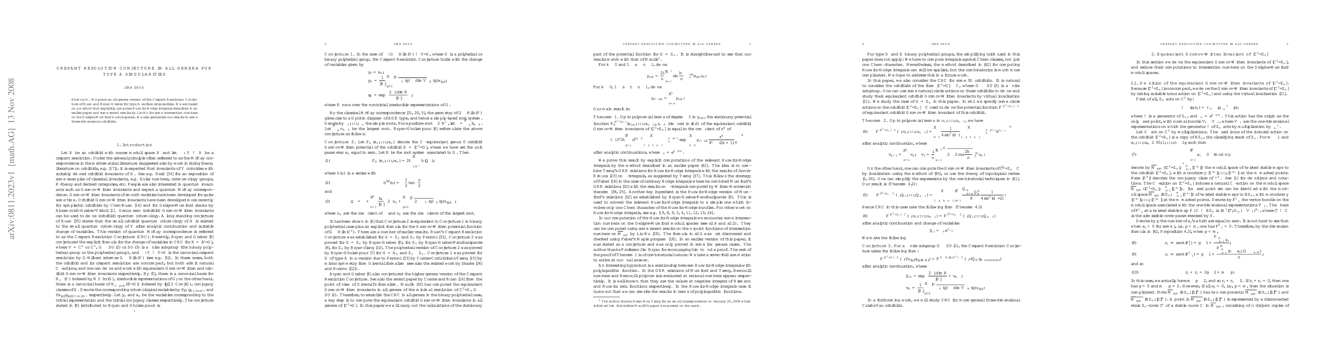 This paper proves the Crepant Resolution Conjecture for type A surface singularities across all genera using a method to compute Hurwitz-Hodge integrals and recent results on intersection numbers. It also extends these findings to three-dimensional orbifolds.