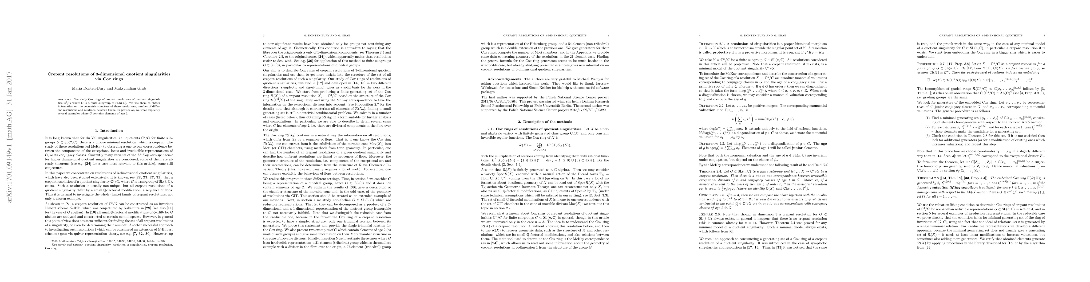 The research employs the study of Cox rings of crepant resolutions of 3-dimensional quotient singularities $\mathbb{C}^3/G$, where $G$ is a finite subgroup of $SL(3,\mathbb{C})$. It uses these Cox rings to analyze the geometric structure of these resolutions, the number of different resolutions, and the relations between them, with a focus on examples involving elements of age 2 in $G$.