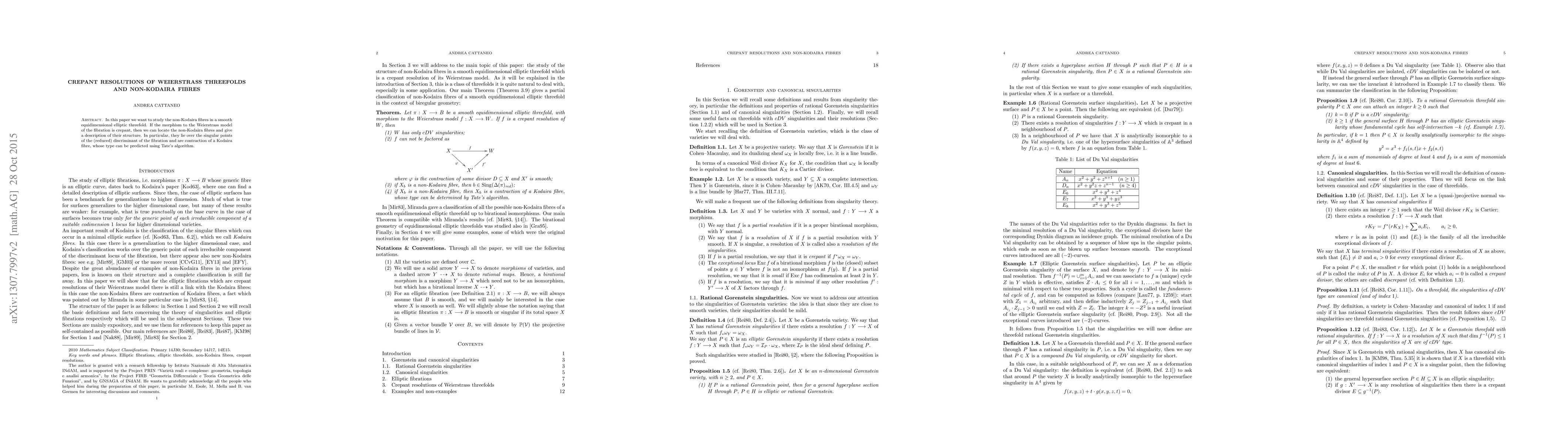 In this paper we want to study the non-Kodaira fibres in a smooth equidimensional elliptic threefold. If the morphism to the Weierstrass model of the fibration is crepant, then we can locate the non-Kodaira fibres and give a description of their structure. In particular, they lie over the singular points of the (reduced) discriminant of the fibration and are contraction of a Kodaira fibre, whose type can be predicted using Tate's algorithm.