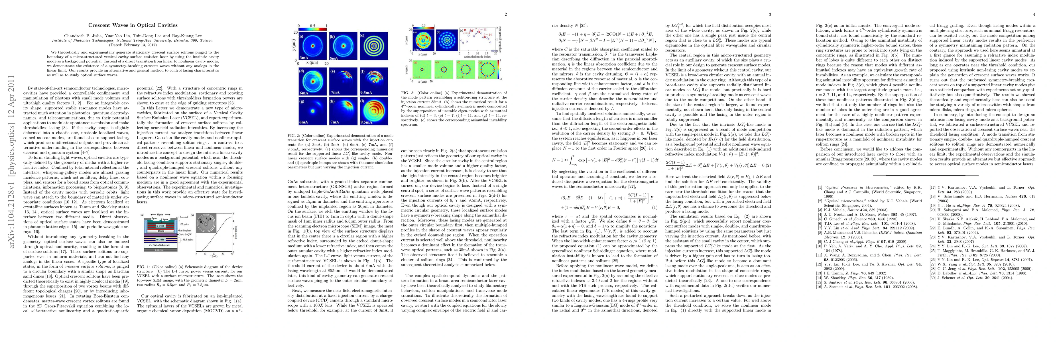 Researchers created stationary crescent surface solitons in a micro-structured laser cavity, revealing a new method to control lasing characteristics and study optical surface waves.
