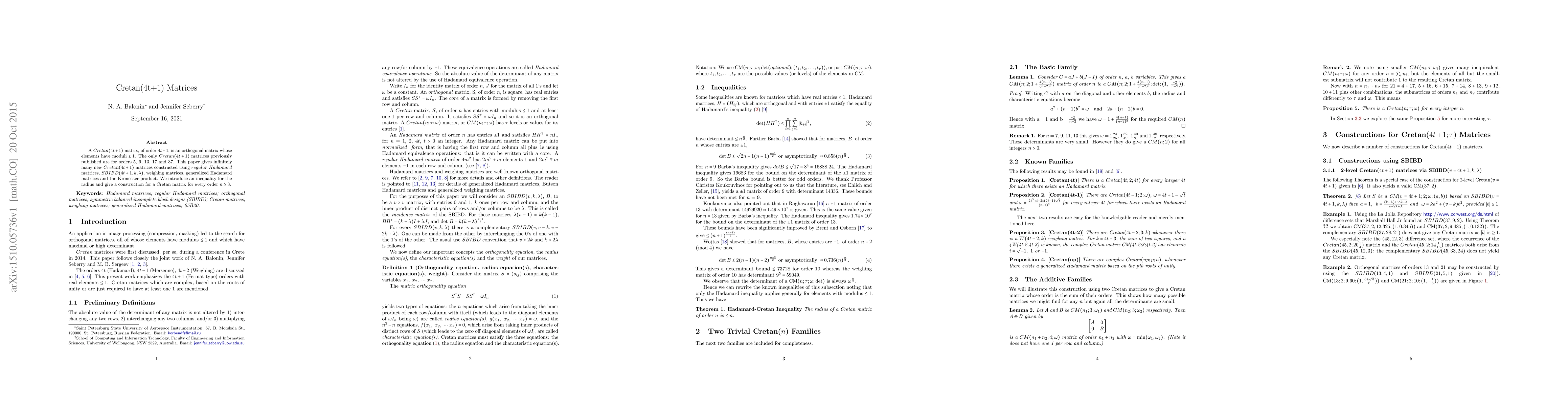 A $Cretan(4t+1)$ matrix, of order $4t+1$, is an orthogonal matrix whose elements have moduli $\leq 1$. The only $Cretan(4t+1)$ matrices previously published are for orders 5, 9, 13, 17 and 37. This paper gives infinitely many new $Cretan(4t+1)$ matrices constructed using $regular~Hadamard$ matrices, $SBIBD(4t+1,k,\lambda)$, weighing matrices, generalized Hadamard matrices and the Kronecker product. We introduce an inequality for the radius and give a construction for a Cretan matrix for every order $n \geq 3$.