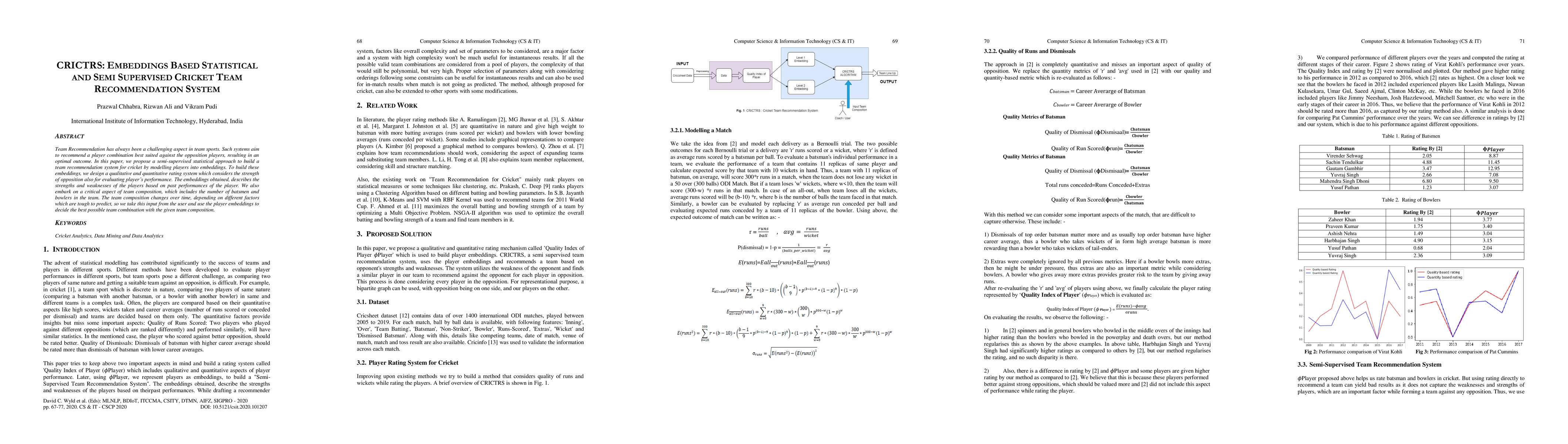 This paper proposes a semi-supervised statistical method for recommending cricket team compositions by embedding players into vectors that reflect their strengths and weaknesses based on past performances and opposition strength. The system allows user input for team composition preferences to suggest optimal player combinations.