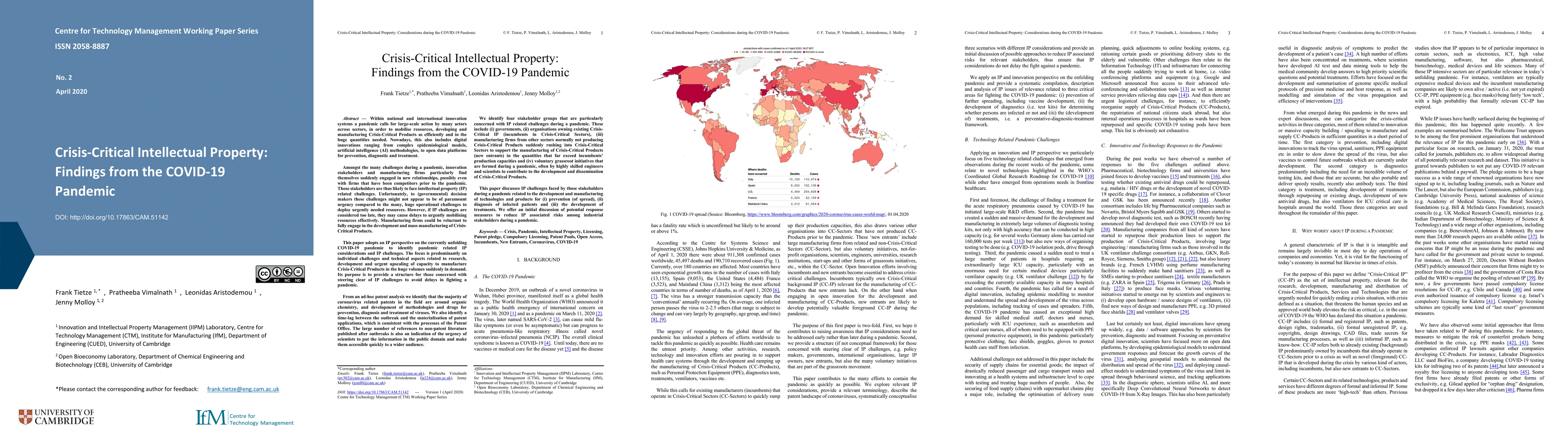 Within national and international innovation systems a pandemic calls for large-scale action by many actors across sectors, to mobilise resources, developing and manufacturing Crisis-Critical Products (CC-Products) efficiently and in the huge quantities needed. Nowadays, this also includes digital innovations from complex epidemiological models, AI, to open data platforms for prevention, diagnostic and treatment. Amongst the many challenges during a pandemic, innovation and manufacturing stakeholders find themselves engaged in new relationships, and are likely to face intellectual property (IP) related challenges. This paper adopts an IP perspective on the COVID-19 pandemic to identify pandemic related IP considerations and IP challenges. The focus is on challenges related to research, development and urgent upscaling of capacity to manufacture CC-Products in the huge volumes suddenly in demand. Its purpose is to provide a structure for steering clear of IP challenges to avoid delays in fighting a pandemic. We identify 4 stakeholder groups concerned with IP challenges: (i) governments, (ii) organisations owning existing Crisis-Critical IP, described as incumbents in Crisis-Critical Sectors (CC-Sectors), (iii) manufacturing firms from other sectors normally not producing CC-Products suddenly rushing into CC-Sectors to support the manufacturing of CC-Products (new entrants), and (iv) voluntary grassroot initiatives that are formed during a pandemic. This paper discusses IP challenges related to the development and manufacturing of technologies and products for (i) prevention (of spread), (ii) diagnosis of infected patients and (iii) the development of treatments. We offer an initial discussion of potential response measures to reduce IP associated risks among industrial stakeholders during a pandemic.