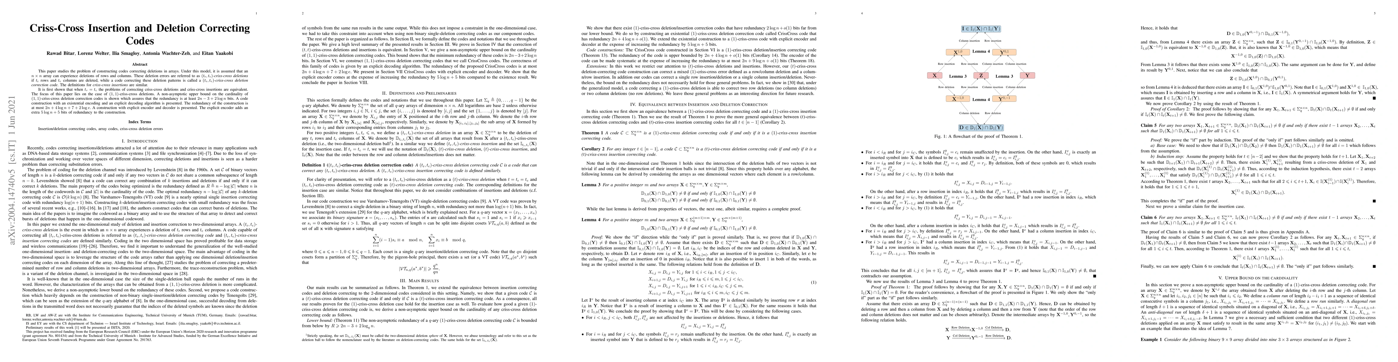This paper explores codes for correcting $(1,1)$-criss-cross deletions in arrays, demonstrating equivalence between deletion and insertion correction. It presents a construction with a redundancy of $2n+4 \log n + 7 + 2 \log e$ bits and an explicit encoder adding an additional $5\log n + 5$ bits.