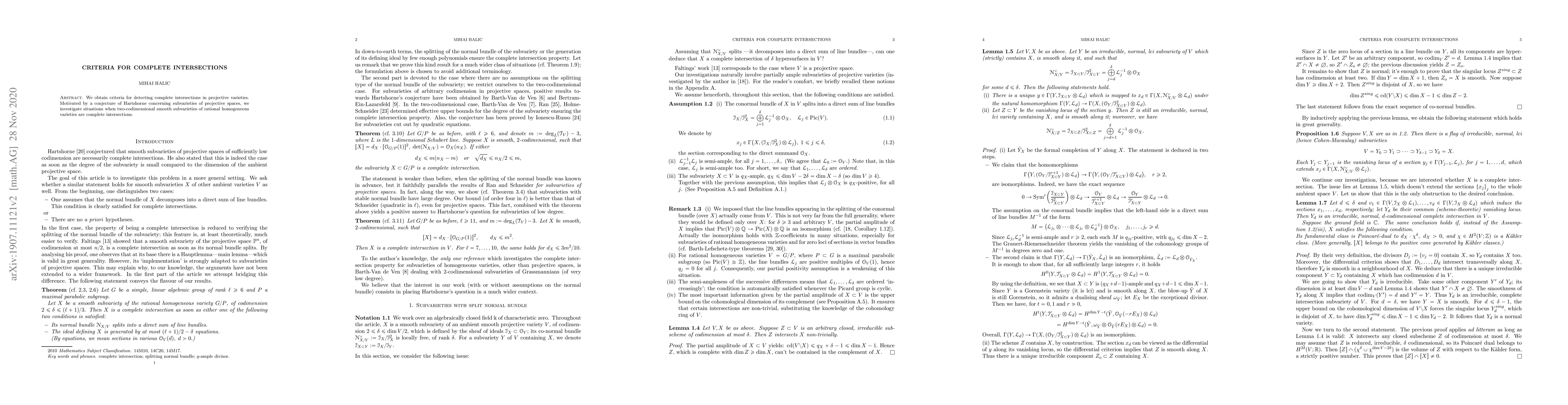 The research introduces refined criteria for complete intersection detection, addressing a specific case of Hartshorne's conjecture with detailed conditions on the normal bundles and amplitudes.