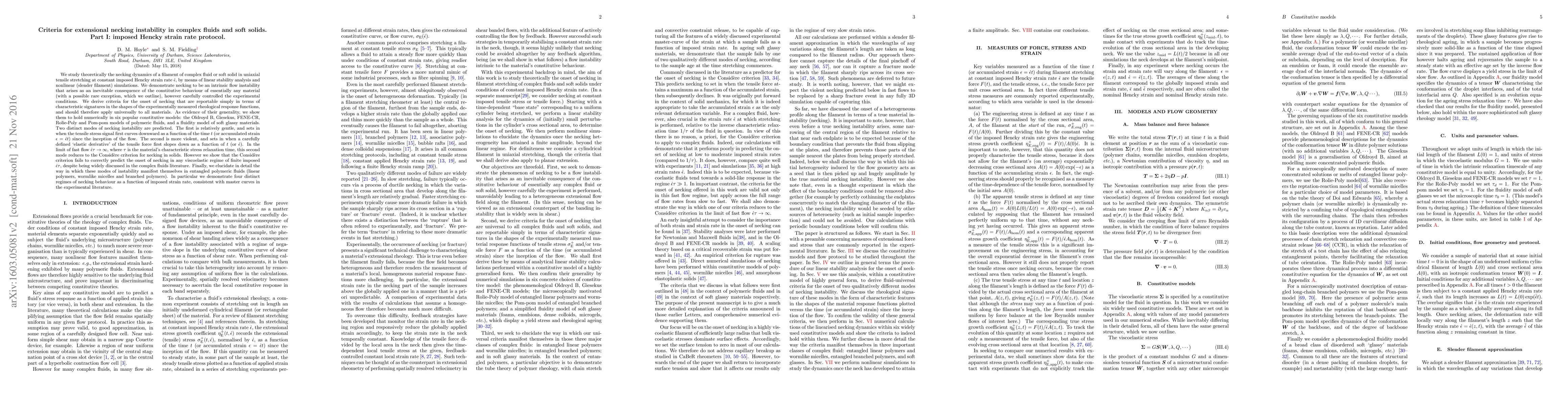 We study the necking dynamics of a filament of complex fluid or soft solid in uniaxial tensile stretching at constant imposed Hencky strain rate $\dot\varepsilon$, by means of linear stability analysis and nonlinear (slender filament) simulations. We demonstrate necking to be an intrinsic flow instability that arises as an inevitable consequence of the constitutive behaviour of essentially any material (with a possible rare exception, which we outline). We derive criteria for the onset of necking that are reportable simply in terms of characteristic signatures in the shapes of the experimentally measured rheological response functions, and should therefore apply universally to all materials. As evidence of their generality, we numerically show them to hold in six popular constitutive models of polymers and soft glasses. Two distinct modes of necking instability are predicted. The first is relatively gentle, and sets in when the tensile stress signal first curves down as a function of the time $t$ (or accumulated strain $\epsilon=\dot\varepsilon t$) since the inception of the flow. The second is more violent, and sets in when a carefully defined `elastic derivative' of the tensile force first slopes down as a function of $t$ (or $\dot\varepsilon$). In the limit of fast flow $\dot\varepsilon\tau\to\infty$, where $\tau$ is the material's characteristic stress relaxation time, this second mode reduces to the Consid\'ere criterion for necking in solids. However we show that the Consid\'ere criterion fails to correctly predict the onset of necking in any viscoelastic regime of finite imposed $\dot\varepsilon\tau$. Finally, we elucidate the way these modes of instability manifest themselves in entangled linear polymers, wormlike micelles and branched polymers. We demonstrate four distinct regimes as a function of imposed strain rate, consistent with experimental master curves.