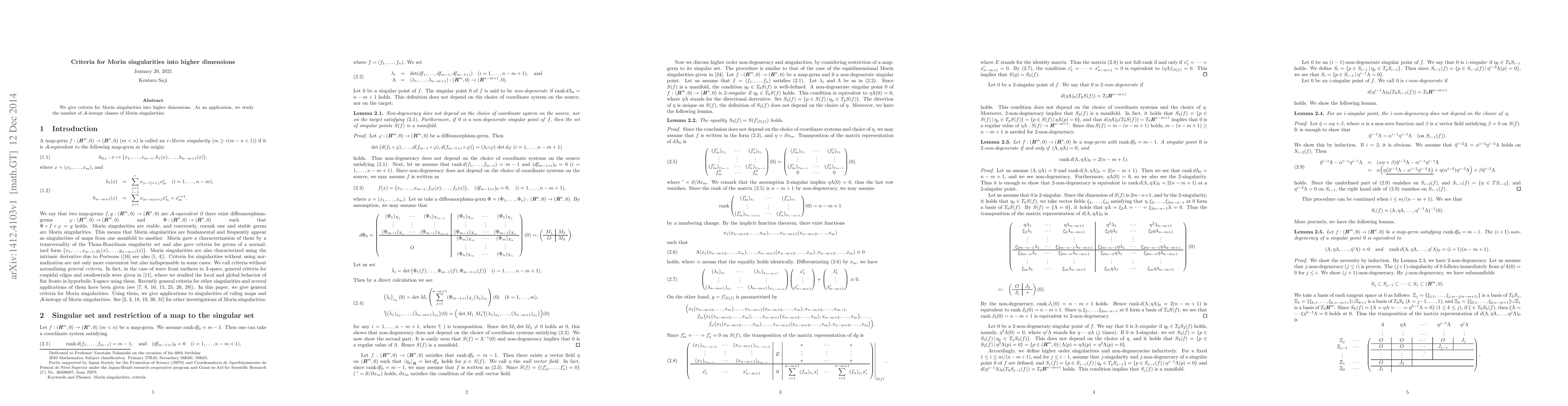 Summary: This paper provides criteria for identifying Morin singularities in higher-dimensional spaces and applies these criteria to determine the number of A-isotopy classes of such singularities.