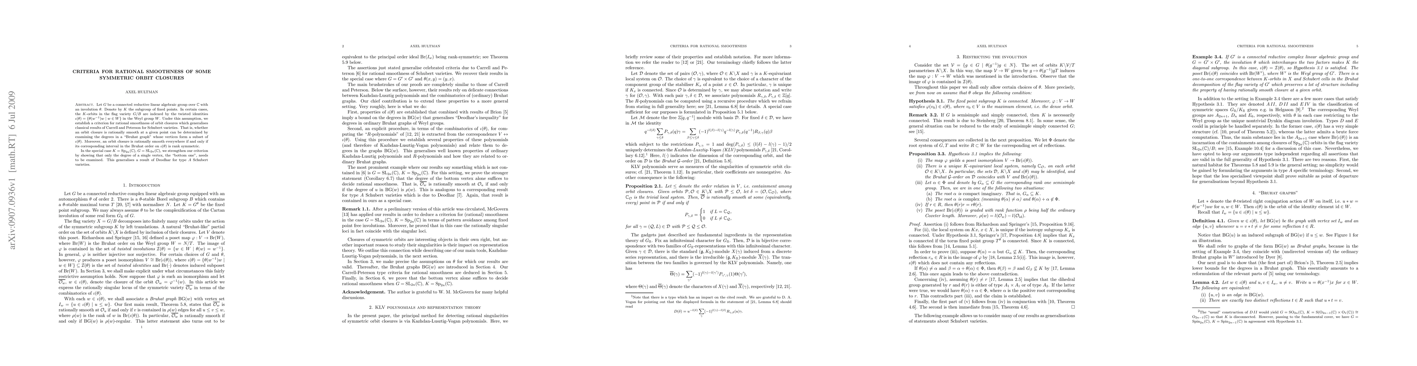 Let $G$ be a connected reductive linear algebraic group over $\C$ with an involution $\theta$. Denote by $K$ the subgroup of fixed points. In certain cases, the $K$-orbits in the flag variety $G/B$ are indexed by the twisted identities $\iot = \{\theta(w^{-1})w\mid w\in W\}$ in the Weyl group $W$. Under this assumption, we establish a criterion for rational smoothness of orbit closures which generalises classical results of Carrell and Peterson for Schubert varieties. That is, whether an orbit closure is rationally smooth at a given point can be determined by examining the degrees in a ``Bruhat graph'' whose vertices form a subset of $\iot$. Moreover, an orbit closure is rationally smooth everywhere if and only if its corresponding interval in the Bruhat order on $\iot$ is rank symmetric. In the special case $K=\Sp_{2n}(\C)$, $G=\SL_{2n}(\C)$, we strengthen our criterion by showing that only the degree of a single vertex, the ``bottom one'', needs to be examined. This generalises a result of Deodhar for type $A$ Schubert varieties.