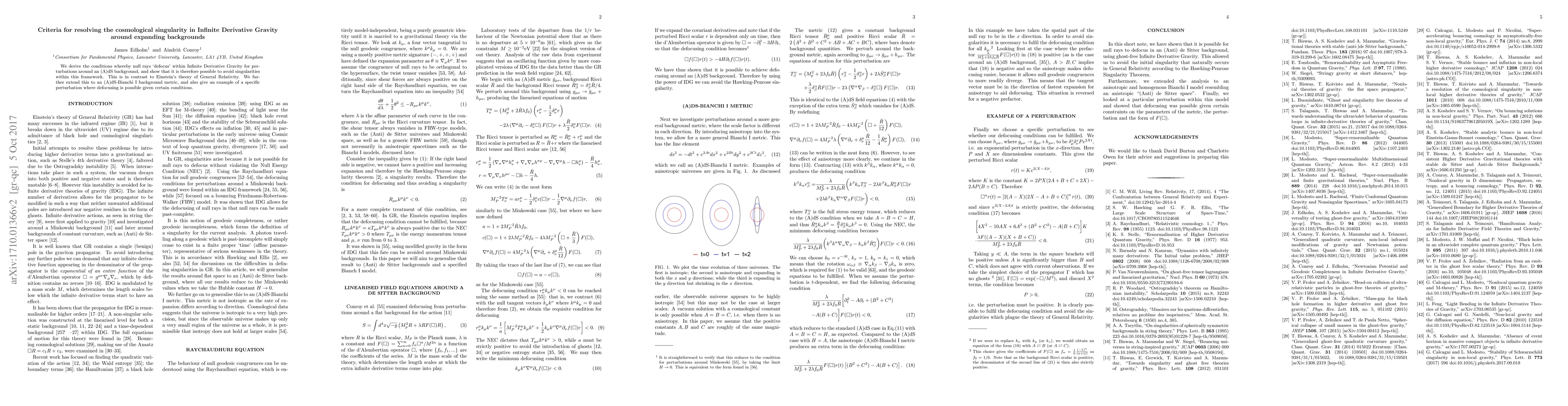 We derive the conditions whereby null rays `defocus' within Infinite Derivative Gravity for perturbations around an (A)dS background, and show that it is therefore possible to avoid singularities within this framework. This is in contrast to Einstein's theory of General Relativity. We further extend this to an (A)dS-Bianchi I background metric, and also give an example of a specific perturbation where defocusing is possible given certain conditions.