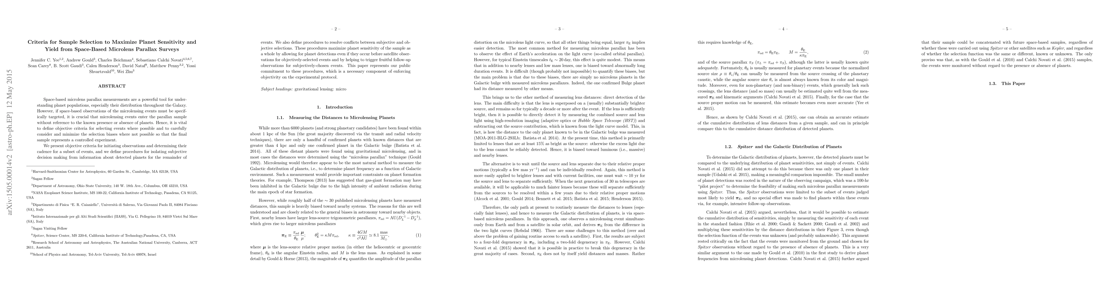 This paper outlines criteria for selecting microlensing events for space-based parallax surveys to maximize planet detection sensitivity, ensuring unbiased selection processes and minimizing selection biases. It emphasizes objective criteria for initial observations and procedures to separate subjective decisions from planet information to maintain experimental integrity.
