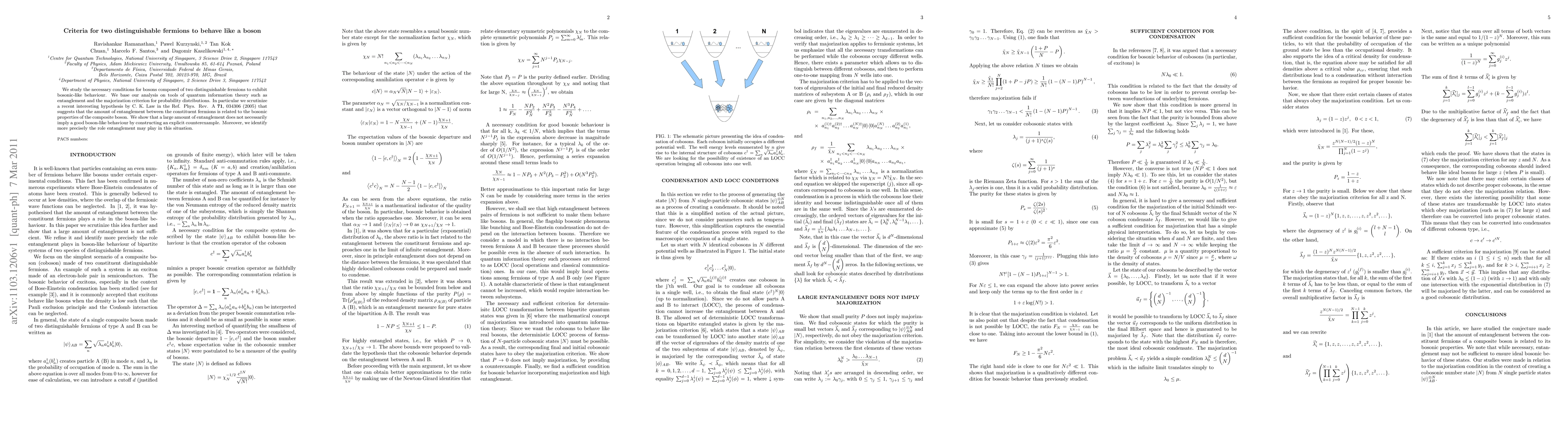Researchers study conditions for two distinguishable fermions to behave like a boson, showing that large entanglement does not guarantee good bosonic behavior, but rather identifying the role of entanglement in this situation.