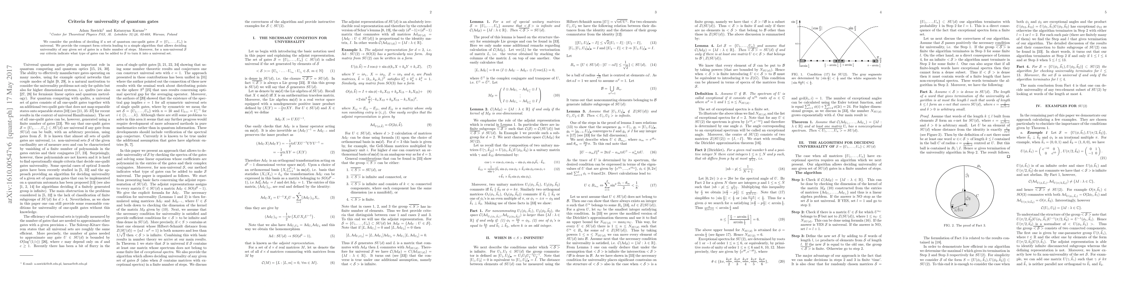 We consider the problem of deciding if a set of quantum one-qudit gates $\mathcal{S}=\{U_1,\ldots,U_n\}$ is universal. We provide the compact form criteria leading to a simple algorithm that allows deciding universality of any given set of gates in a finite number of steps. Moreover, for a non-universal $\mathcal{S}$ our criteria indicate what type of gates can be added to $\mathcal{S}$ to turn it into a universal set.