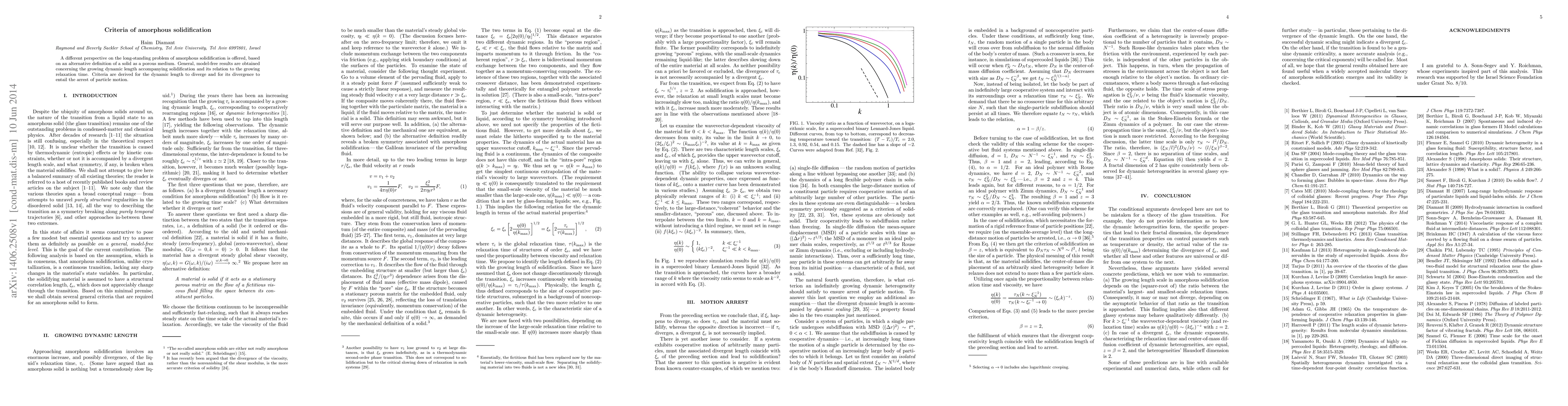 A different perspective on the long-standing problem of amorphous solidification is offered, based on an alternative definition of a solid as a porous medium. General, model-free results are obtained concerning the growing dynamic length accompanying solidification and its relation to the growing relaxation time. Criteria are derived for the dynamic length to diverge and for its divergence to entail the arrest of particle motion.