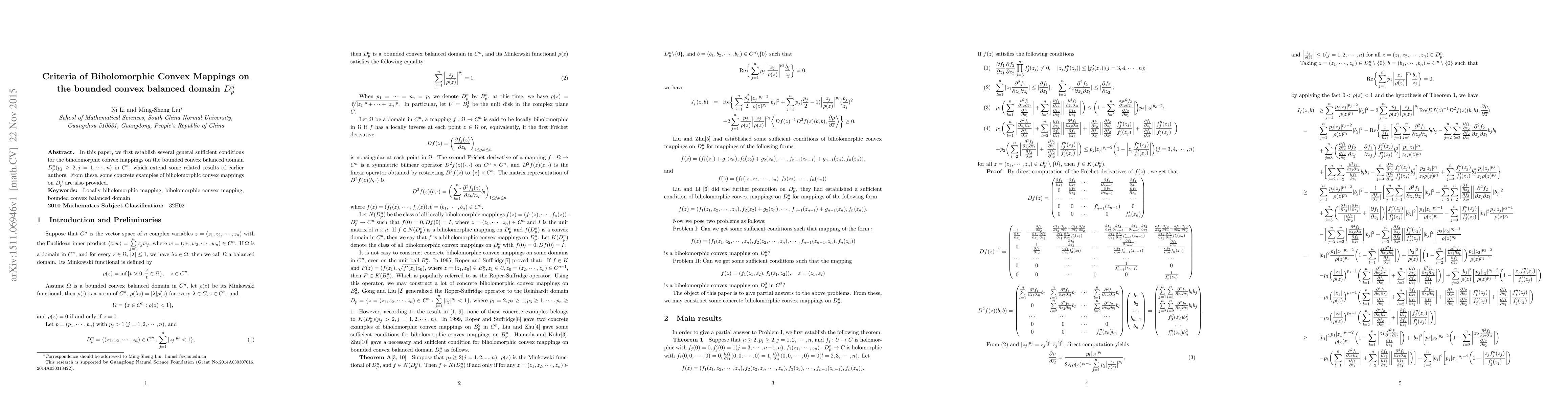 This paper establishes sufficient conditions for biholomorphic convex mappings on the bounded convex balanced domain $D_{p}^n$ in $C^{n}$, extending previous results and providing concrete examples of such mappings.