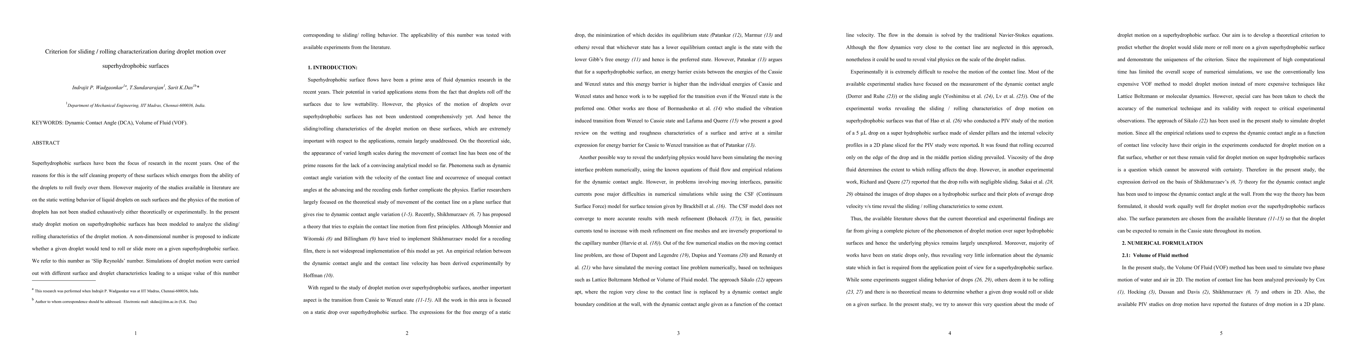 Researchers developed a new method to predict whether a droplet on a superhydrophobic surface will roll or slide, using the 'Slip Reynolds' number, which can help understand self-cleaning properties of these surfaces.