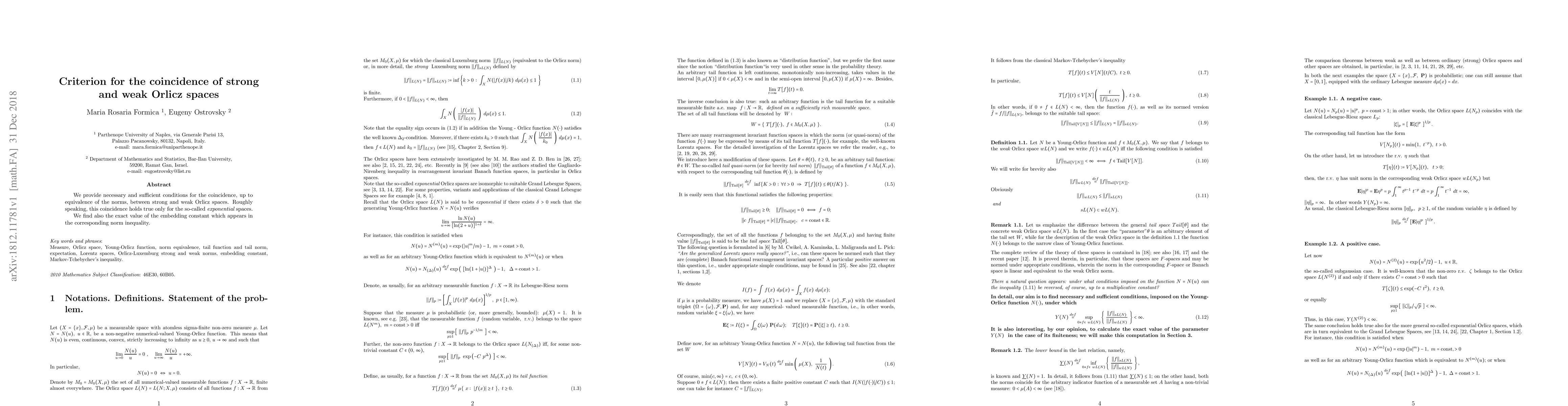 Researchers find necessary and sufficient conditions for coincidence of strong and weak Orlicz spaces, primarily applicable to exponential spaces, with an exact value of the embedding constant.