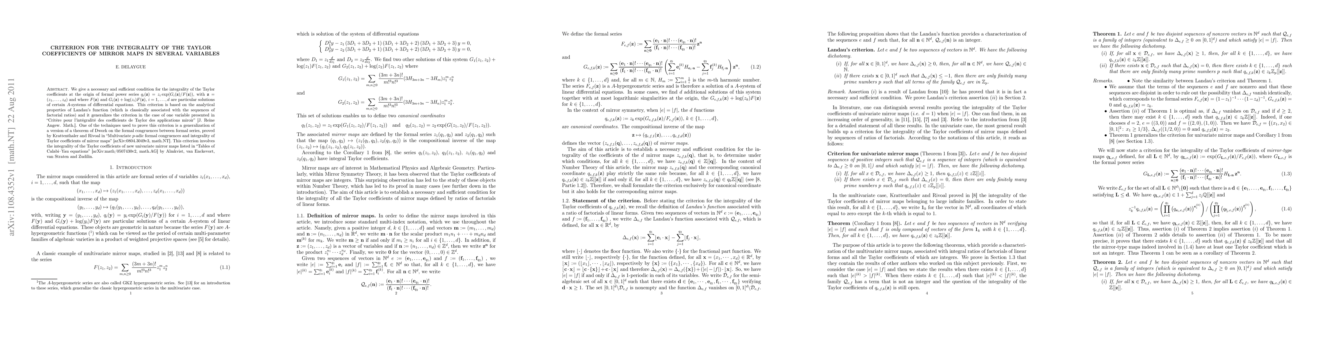 Researchers develop a necessary and sufficient condition for the integrality of Taylor coefficients in mirror maps, a concept from algebraic geometry, to prove integral equations of Calabi-Yau equations.