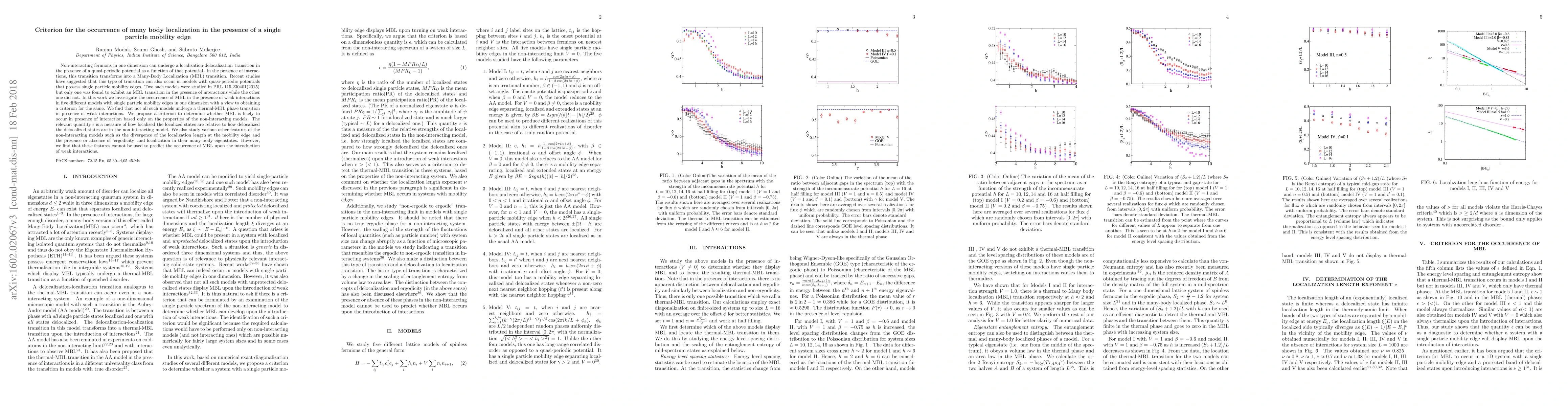 Non-interacting fermions in one dimension can undergo a localization-delocalization transition in the presence of a quasi-periodic potential as a function of that potential. In the presence of interactions, this transition transforms into a Many-Body Localization (MBL) transition. Recent studies have suggested that this type of transition can also occur in models with quasi-periodic potentials that possess single particle mobility edges. Two such models were studied in PRL 115,230401(2015) but only one was found to exhibit an MBL transition in the presence of interactions while the other one did not. In this work we investigate the occurrence of MBL in the presence of weak interactions in five different models with single particle mobility edges in one dimension with a view to obtaining a criterion for the same. We find that not all such models undergo a thermal-MBL phase transition in presence of weak interactions. We propose a criterion to determine whether MBL is likely to occur in presence of interaction based only on the properties of the non-interacting models. The relevant quantity $\epsilon$ is a measure of how localized the localized states are relative to how delocalized the delocalized states are in the non-interacting model. We also study various other features of the non-interacting models such as the divergence of the localization length at the mobility edge and the presence or absence of `ergodicity' and localization in their many-body eigenstates. However, we find that these features cannot be used to predict the occurrence of MBL upon the introduction of weak interactions.