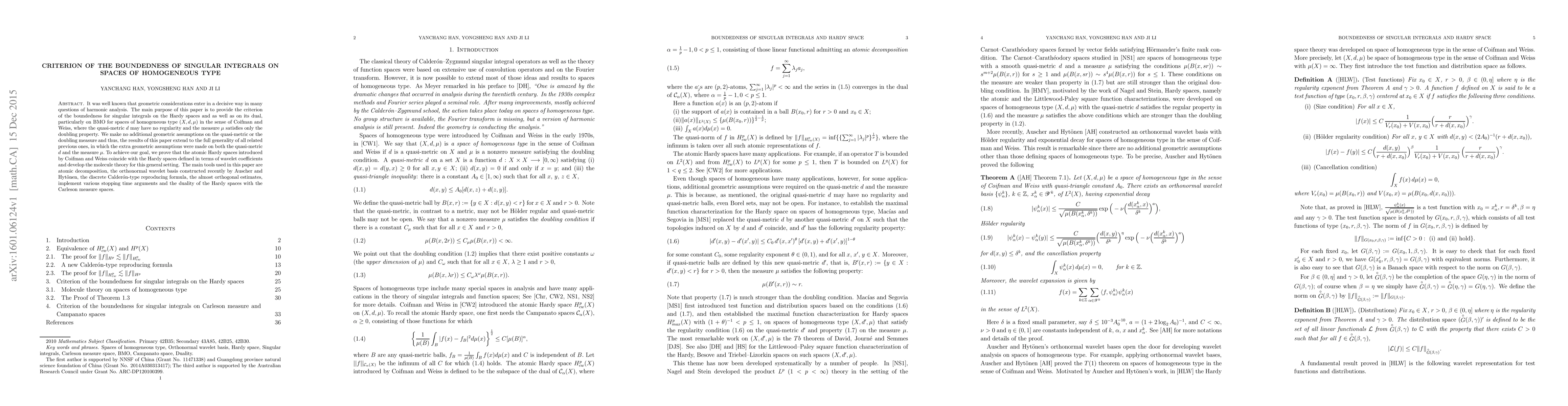 This paper provides a criterion for boundedness of singular integrals on Hardy spaces in spaces of homogeneous type, extending previous results without additional geometric assumptions.