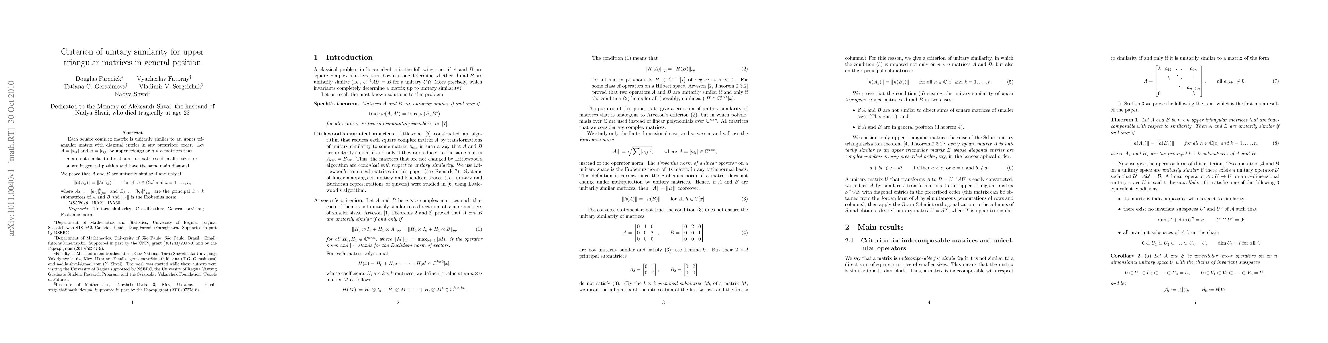 Two upper triangular matrices A and B are unitarily similar if they have the same Frobenius norm for all principal submatrices of a given polynomial.