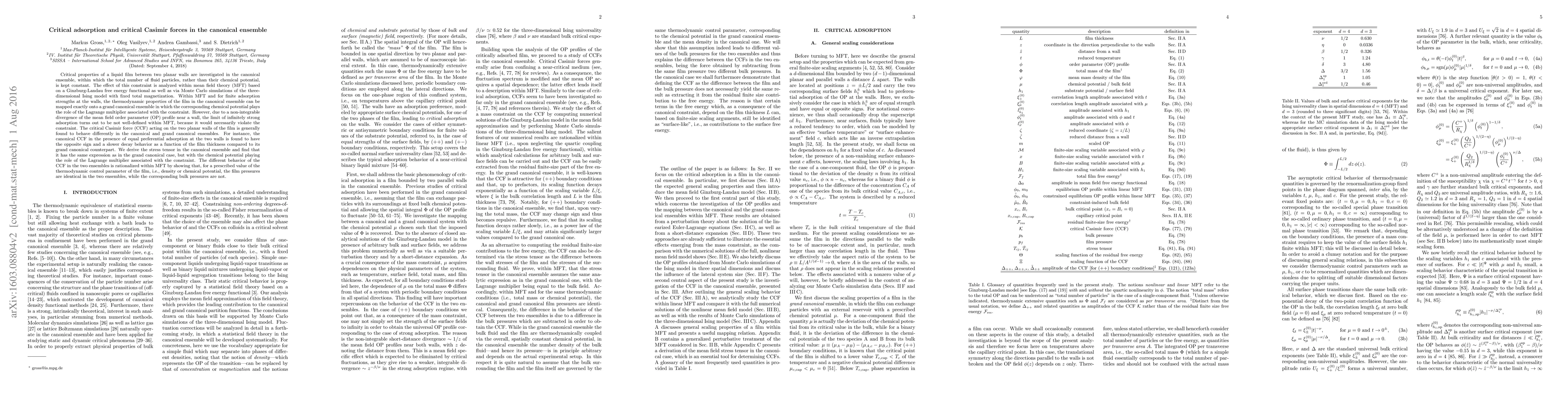 This paper explores critical properties of a liquid film in the canonical ensemble, contrasting it with the grand canonical ensemble. It finds that critical Casimir forces behave differently in these ensembles, with the canonical ensemble showing a reversed sign and slower decay of the force compared to the grand canonical ensemble. The study uses mean field theory and Monte Carlo simulations to analyze these effects.