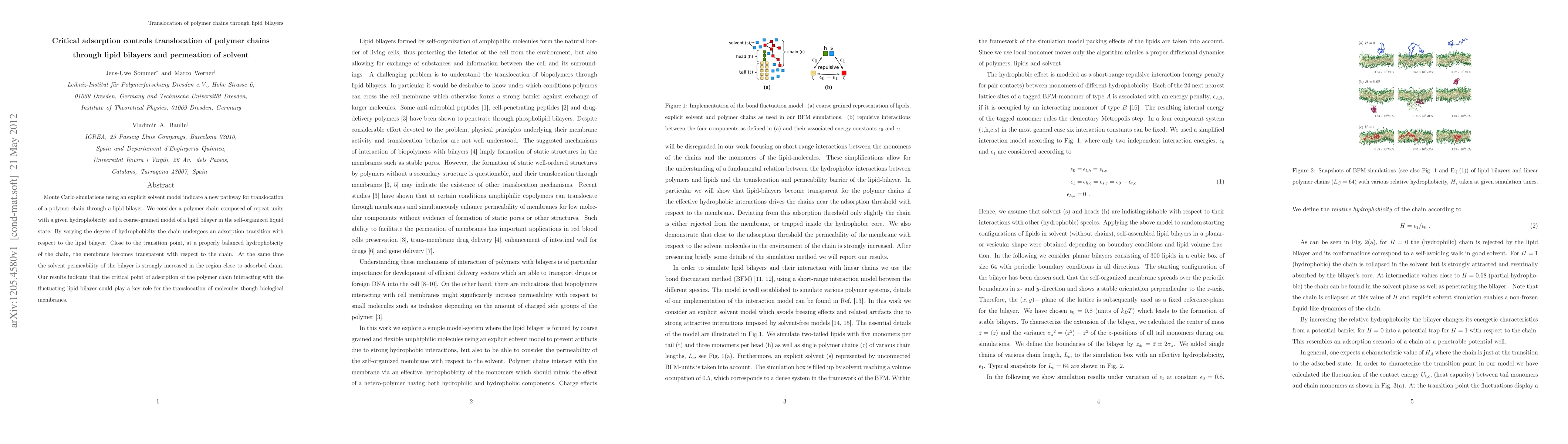 Monte Carlo simulations reveal a critical adsorption transition that controls polymer chain translocation through lipid bilayers, with increased solvent permeability near the adsorption transition point, suggesting a key role for this phenomenon in biological membrane transport.