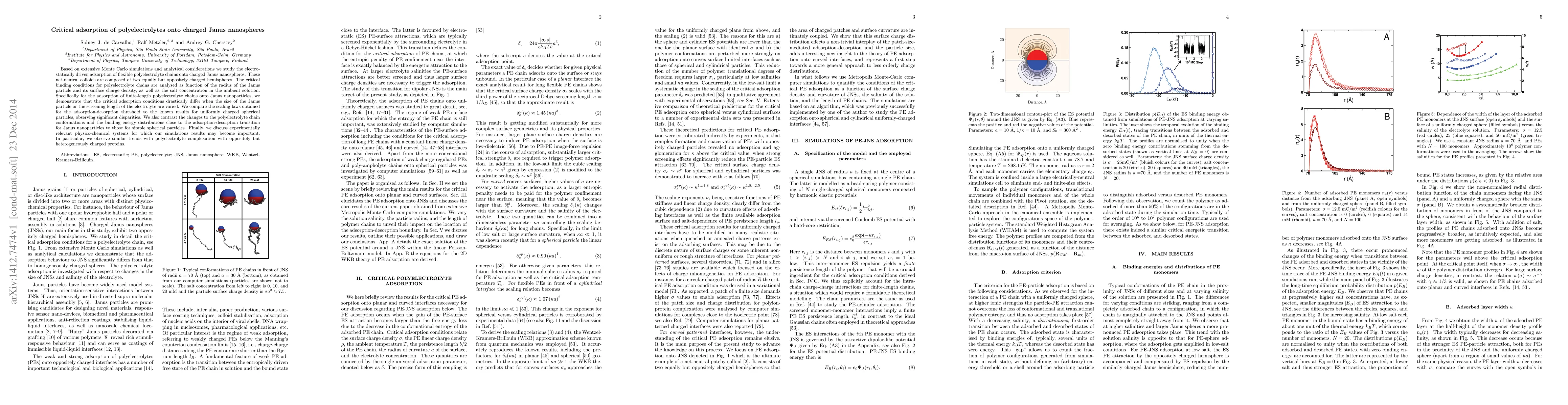 This paper explores the adsorption of polyelectrolyte chains onto Janus nanospheres through Monte Carlo simulations, finding that critical adsorption conditions vary significantly with particle size and electrolyte concentration. The study reveals distinct differences in adsorption behavior compared to uniformly charged particles, highlighting implications for protein complexation.