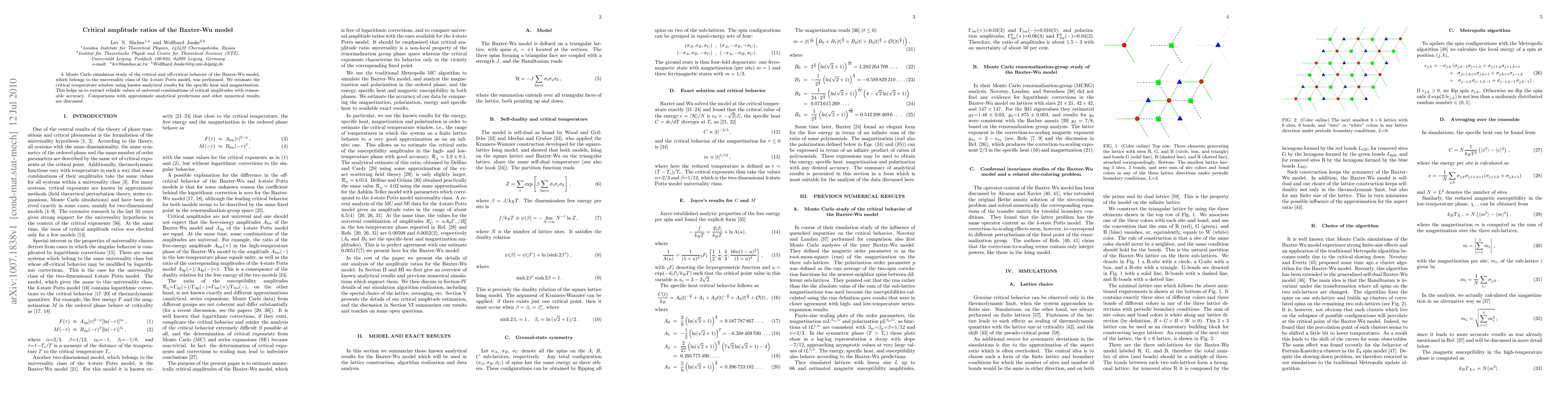 This study uses Monte Carlo simulations to analyze the critical and off-critical behavior of the Baxter-Wu model, estimating the critical temperature window and extracting reliable values of universal critical amplitude ratios, comparing these findings with analytical predictions and other numerical results.