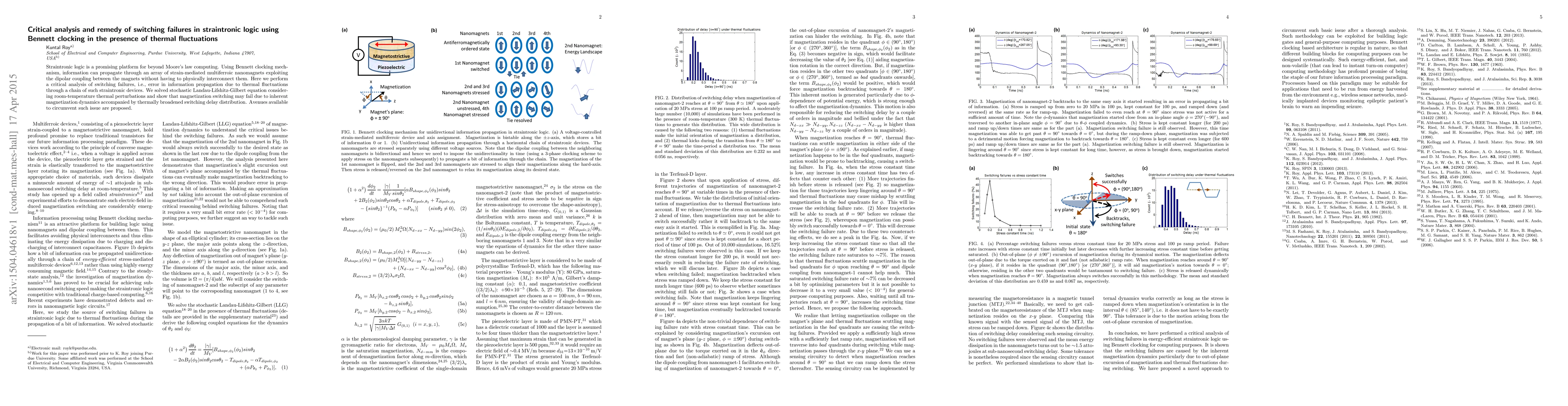 This paper critically analyzes switching failures in straintronic logic due to thermal fluctuations and proposes Bennett clocking as a solution. It demonstrates that thermal perturbations can cause errors in information propagation through strain-mediated multiferroic nanomagnets, and suggests remedies to mitigate these failures.