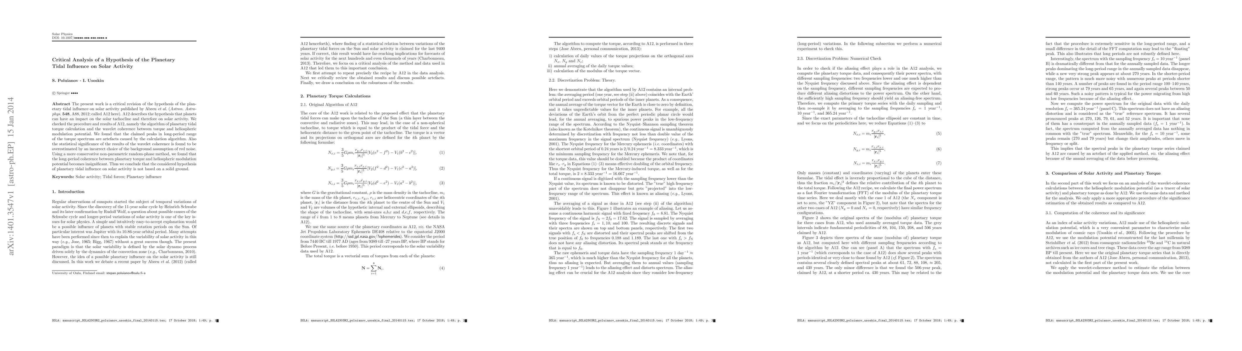This paper critically examines Abreu et al.'s hypothesis of planetary tidal influence on solar activity, finding that claimed peaks in the torque spectrum are artifacts and that the statistical significance of results is overestimated. The study concludes that the hypothesis lacks a solid foundation.