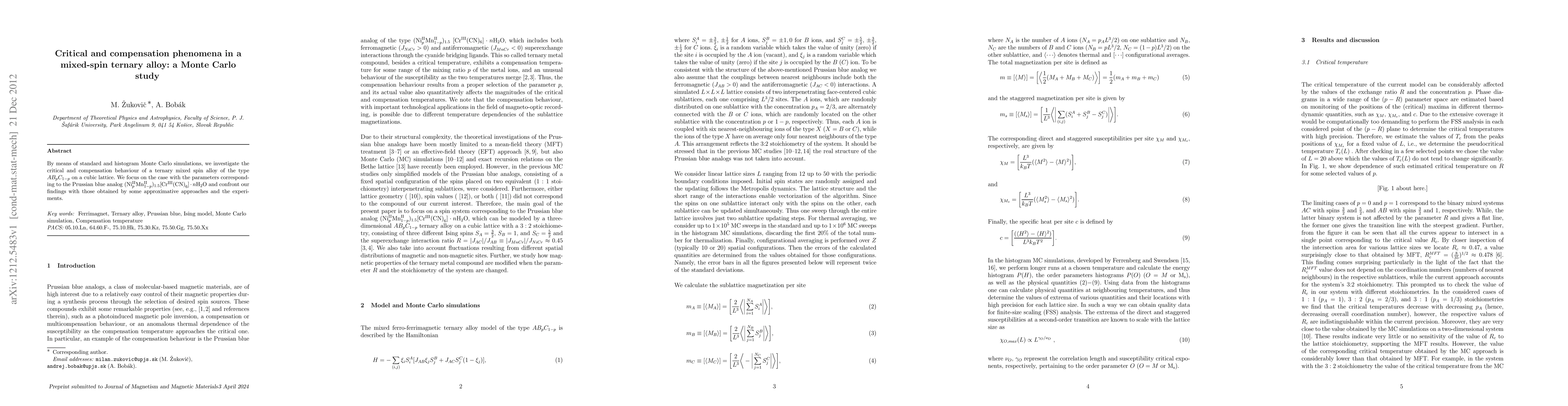 This paper uses Monte Carlo simulations to study the critical and compensation behaviors in a ternary mixed spin alloy, specifically focusing on the Prussian blue analog. The results are compared with approximate methods and experimental data to validate the simulation findings.