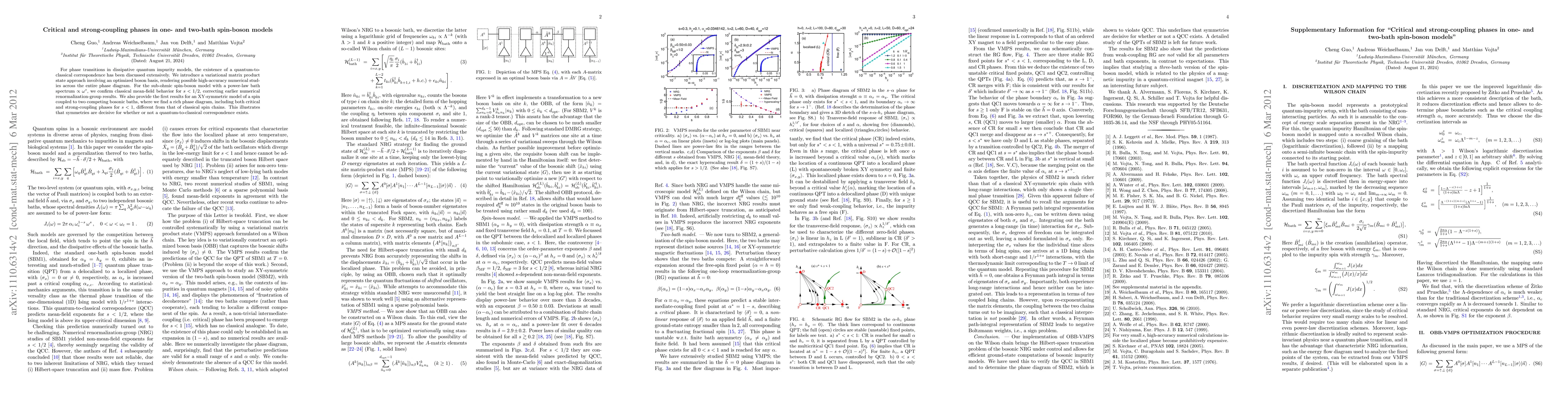 This paper introduces a variational matrix product state approach for studying phase transitions in spin-boson models, confirming classical behavior for sub-ohmic models and revealing a rich phase diagram with critical and strong-coupling phases in an XY-symmetric model coupled to two bosonic baths, highlighting the importance of symmetries in quantum-to-classical correspondence.
