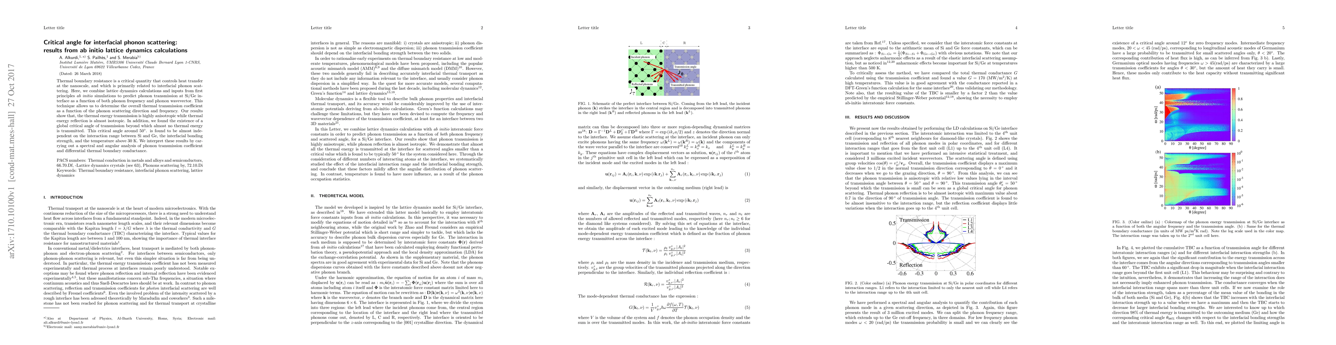Researchers used ab initio lattice dynamics calculations to predict phonon transmission at the Si/Ge interface, finding a critical angle of around 50 degrees beyond which almost no thermal energy is transmitted.