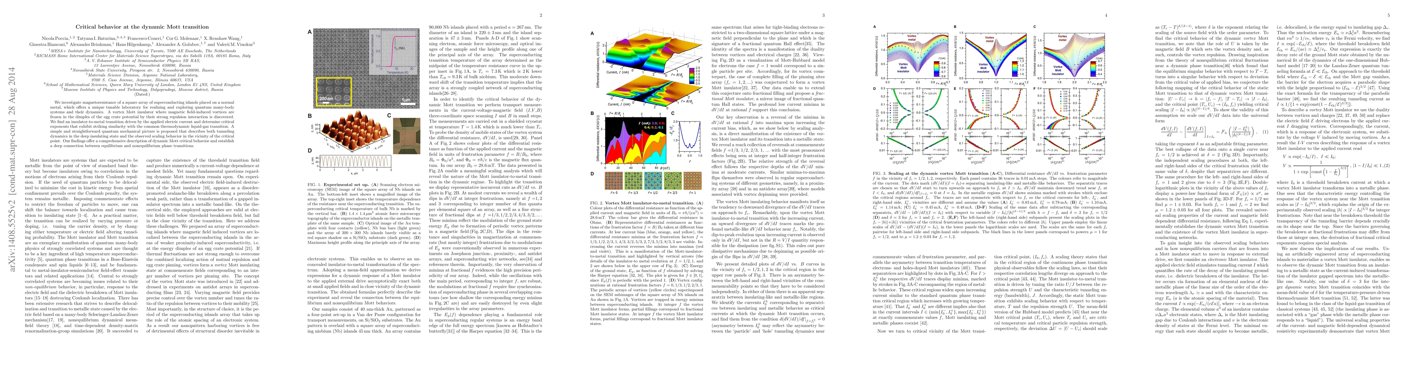 We investigate magnetoresistance of a square array of superconducting islands placed on a normal metal, which offers a unique tunable laboratory for realizing and exploring quantum many-body systems and their dynamics. A vortex Mott insulator where magnetic field-induced vortices are frozen in the dimples of the egg crate potential by their strong repulsion interaction is discovered. We find an insulator-to-metal transition driven by the applied electric current and determine critical exponents that exhibit striking similarity with the common thermodynamic liquid-gas transition. A simple and straightforward quantum mechanical picture is proposed that describes both tunneling dynamics in the deep insulating state and the observed scaling behavior in the vicinity of the critical point. Our findings offer a comprehensive description of dynamic Mott critical behavior and establish a deep connection between equilibrium and nonequilibrium phase transitions.