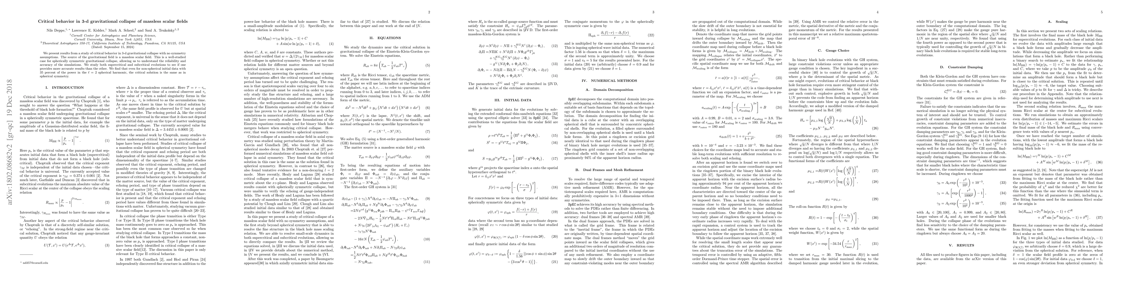 This study investigates critical behavior in 3-dimensional gravitational collapse driven by a massless scalar field, comparing supercritical and subcritical evolutions. The results show that the critical solution remains consistent even with non-spherical initial data, indicating the robustness of the critical phenomena in this context.