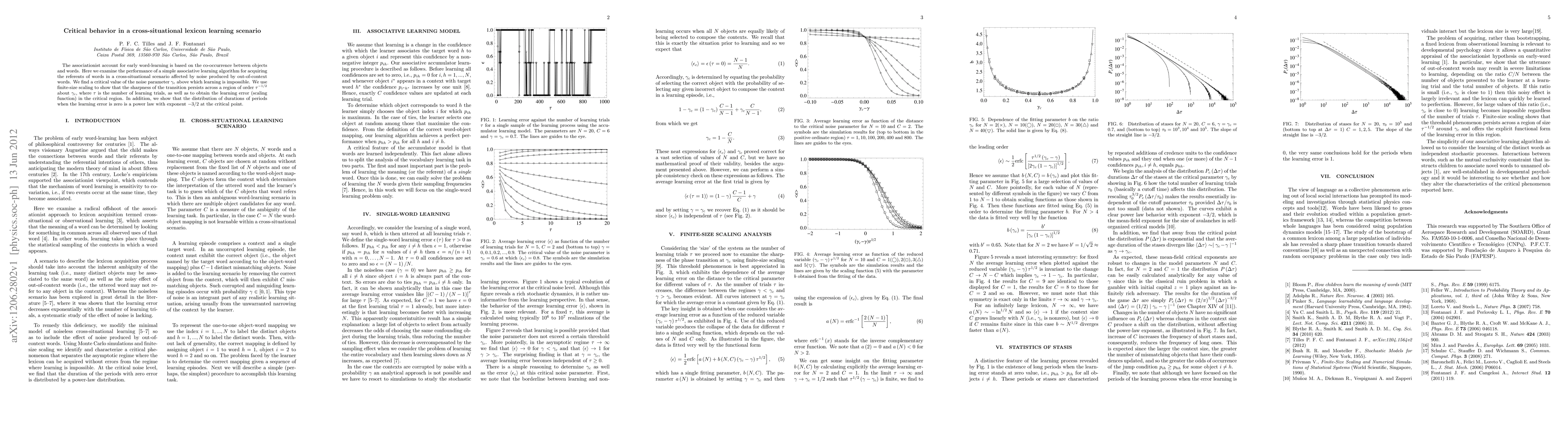 This paper investigates a simple associative learning algorithm's performance in acquiring word meanings in a noisy cross-situational learning scenario, identifying a critical noise threshold $\gamma_c$ beyond which learning fails. The study uses finite-size scaling to demonstrate the sharpness of the learning transition and reveals a power-law distribution of error-free learning periods at the critical point.