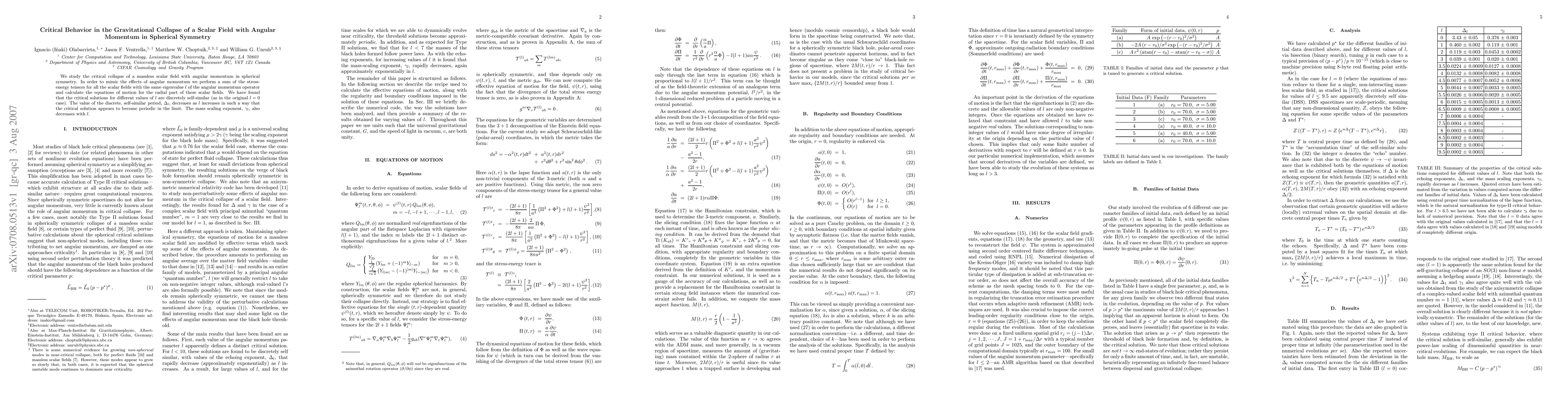 This paper investigates the critical behavior of gravitational collapse for a massless scalar field with angular momentum in spherical symmetry. The study reveals that critical solutions exhibit discrete self-similarity, with the self-similar period and mass scaling exponent decreasing as the angular momentum eigenvalue increases.